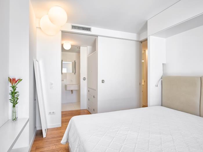 Apartamento de 117 m² para 7 personas (niños incluidos) con vistas al mar. Totalmente equipado y con muebles de diseño. Con una amplia terraza para desconectar y relajarse. Se sitúa en una localización ideal para poder moverse por la población: a tan sólo 2 minutos a pie de la Playa Es Poal, también cerca de bares, restaurantes y tiendas.